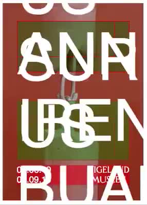 Plakaten bygges på et blunk med noen linjer avansert matematikk, som skalerer ned teksten så den passer innenfor de grønne boksene.
